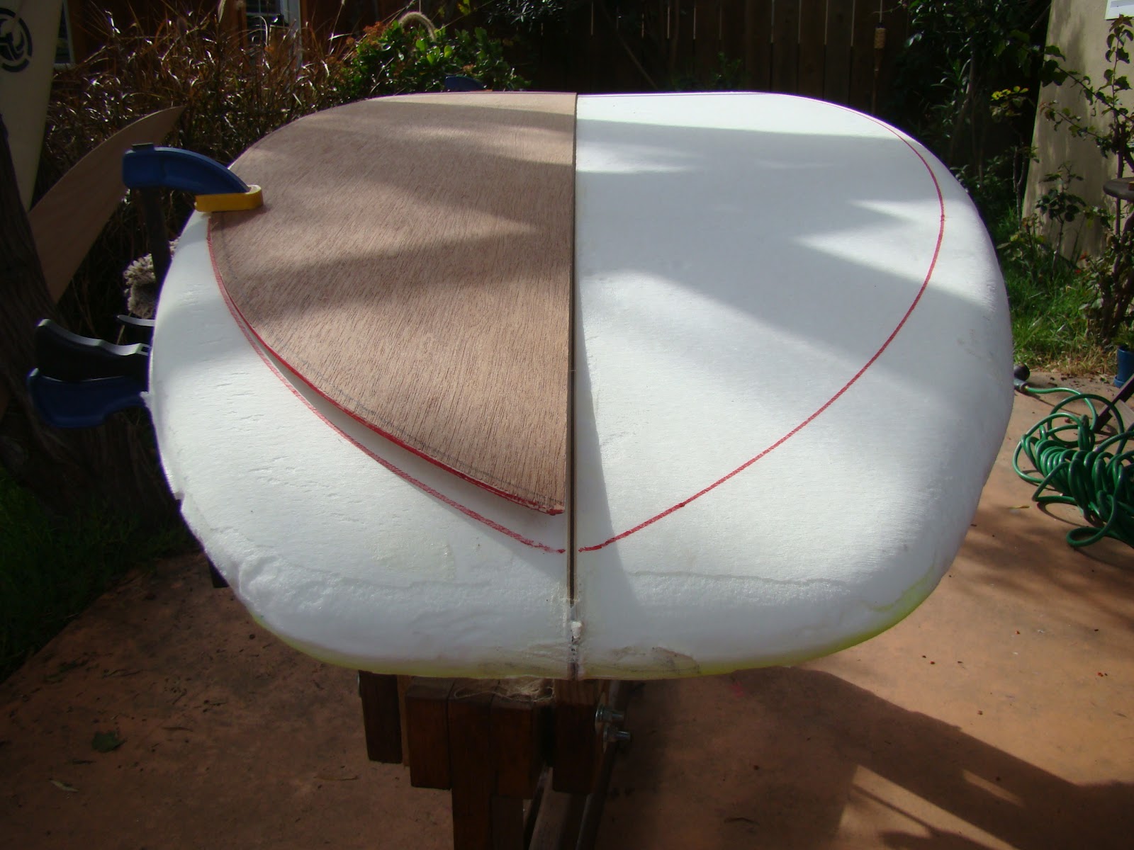 | glassed on wood fins and Moonlight Glassing logo: classy |